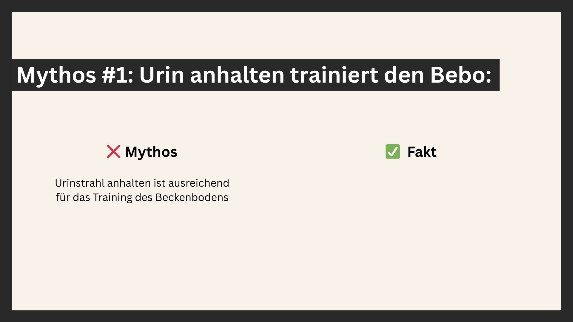 Fakt ist: Modernes Beckenbodentraining ist mehr als bloßes Anspannen. Ein strukturiertes Testing und systematischer Belastungsaufbau ist das Beste, was du mit Menschen, die unter Beckenbodenproblemen leiden, machen kannst. Denn damit weißt du genau, welche Frau mehr Kräftigung und welche mehr Entspannung benötigt.